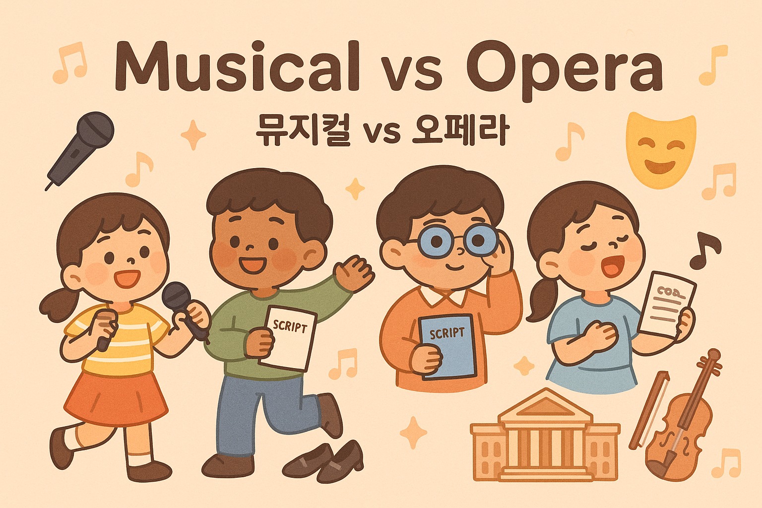 📌 저작권 및 이용 안내 (Copyright Notice)본 글은 중학교 3 학년 수준의 영어 수행평가 예시 자료로 작성되었으며,저작권은 “LearningGuide”인 작성자에게 있습니다.본 자료는 자유롭게 읽고 학습 참고용으로 활용하실 수 있으나,무단 복제, 배포, 전체 또는 일부 내용을 그대로 사용하는 행위는 금지됩니다.이를 위반할 경우 관련 법률에 따라 책임을 질 수 있습니다.🔒 © LearningGuide. All rights reserved. 🎭 뮤지컬 vs 오페라 비교 에세이 — 중3 영어 수행평가 올인원 가이드영문 에세이 최신본 반영 • 조건 충족🔎 목차🧭 인트로✅ 수행평가 조건 요약 & 체크📝 영문 에세이(중요 어휘·문법 강조)🇰🇷 한글 번역🔑 중요 어휘 요약📚 문법 포..