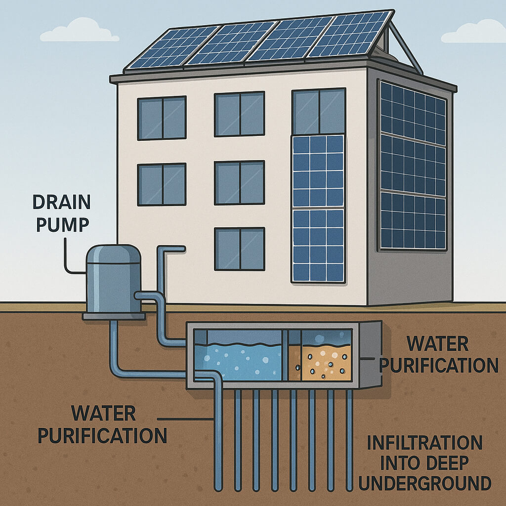 ☀️ Drain Pump + 태양광 융합 시스템침수 방지 · 지반 안정화 · 에너지 자립도시 안전과 지속가능성을 동시에 잡는 미래 건축 모델한국어 🇰🇷 English 🇺🇸🌍 문제의식기후변화로 폭우와 태풍이 빈번해지면서 도시마다 상습 침수와 지반침하 문제가 심각해지고 있습니다. 기존 하수도 인프라는 한계에 부딪혔고, 지하수 공동화로 인한 대형 싱크홀 위험까지 증가하고 있습니다.🏗️ Drain Pump 시스템신규 건축물(3층 이상)은 총 층수의 1/3 용량으로 빗물을 저장할 수 있는 Drain Pump를 의무 설치합니다. 폭우 시 하수도 부하를 분산시키고, 평상시에는 정화된 빗물을 지하로 천천히 스며들게 하여 지반을 안정화합니다.☀️ 태양광 융합Drain Pump 가동에는 안정적인 에너지가 필요합..